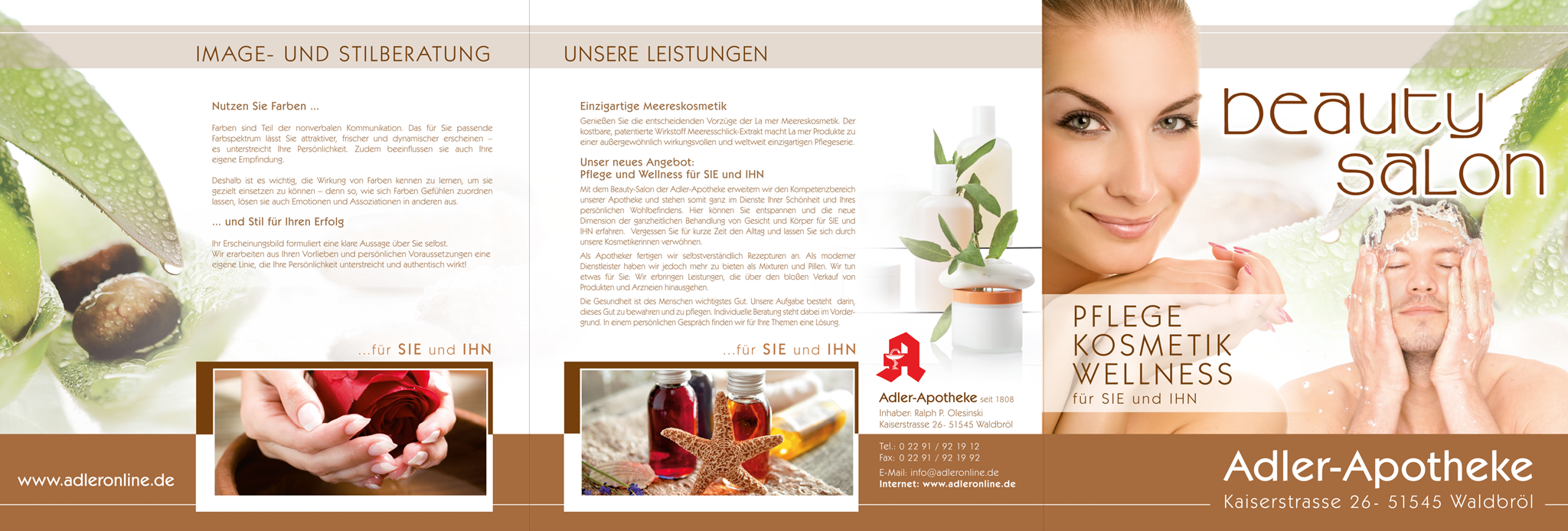 Beispiel: Beauty-Salon, Wickelfalz, DIN A 4, quadratisch [ Zur Übersicht ]